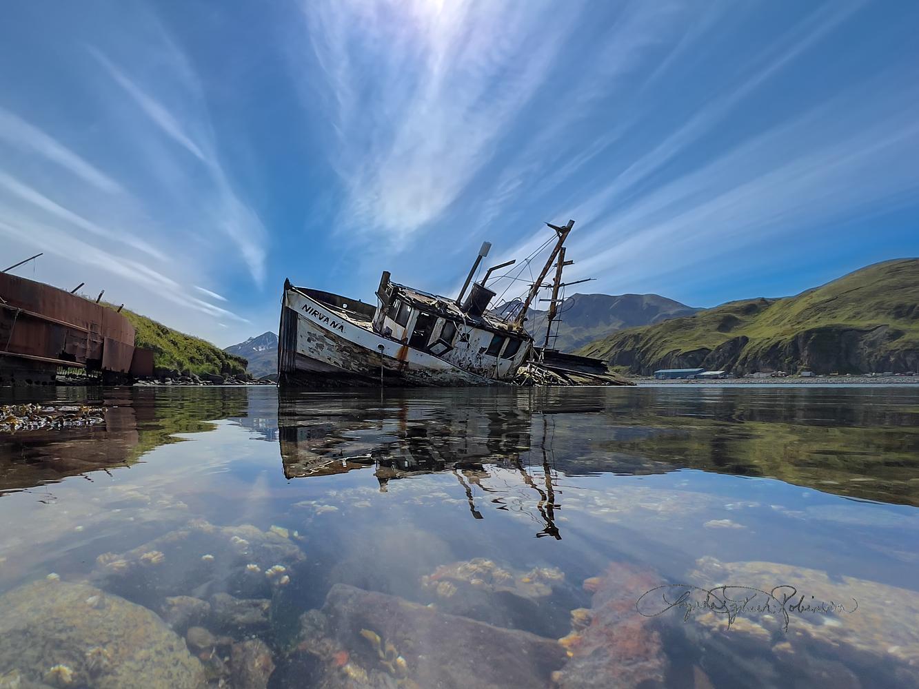 F/V Nirvana in her final resting place on Agnes Beach, in Dutch Harbor