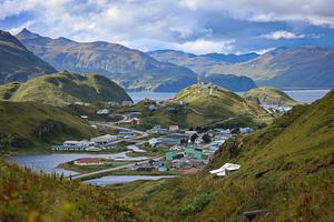 Downtown Unalaska from Ski Bowl, Autumn Scene